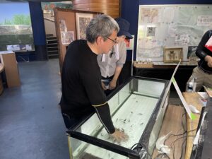 藺牟田池。実は敷地内にひっそりと小さな水族館があります。