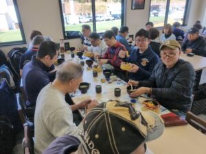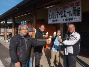 道中サクラカネヨ直売所へ寄り、しんこ団子や醤油ソフトクリームを頂きながら小休止。