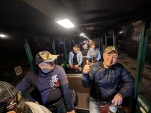金山蔵ではトロッコに乗り串木野金山跡の焼酎蔵へ。
